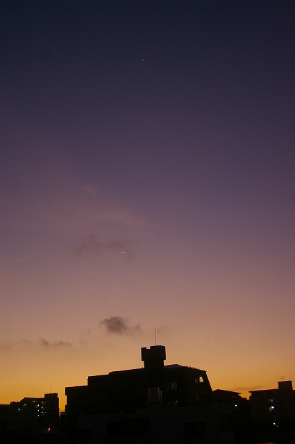 朝の薄明と月、明けの明星(沖縄県宜野湾市 07/10/09 06:03)